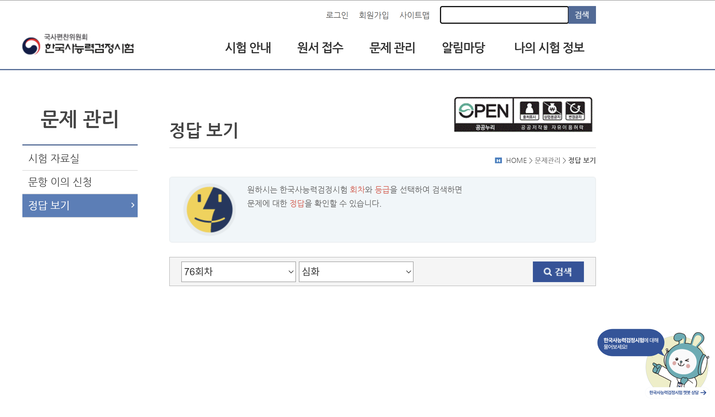 시험 당일 오후면 공식 홈페이지에 정답지가 올라와요. 저처럼 성격 급한 분들은 미리 가채점해 보시죠?